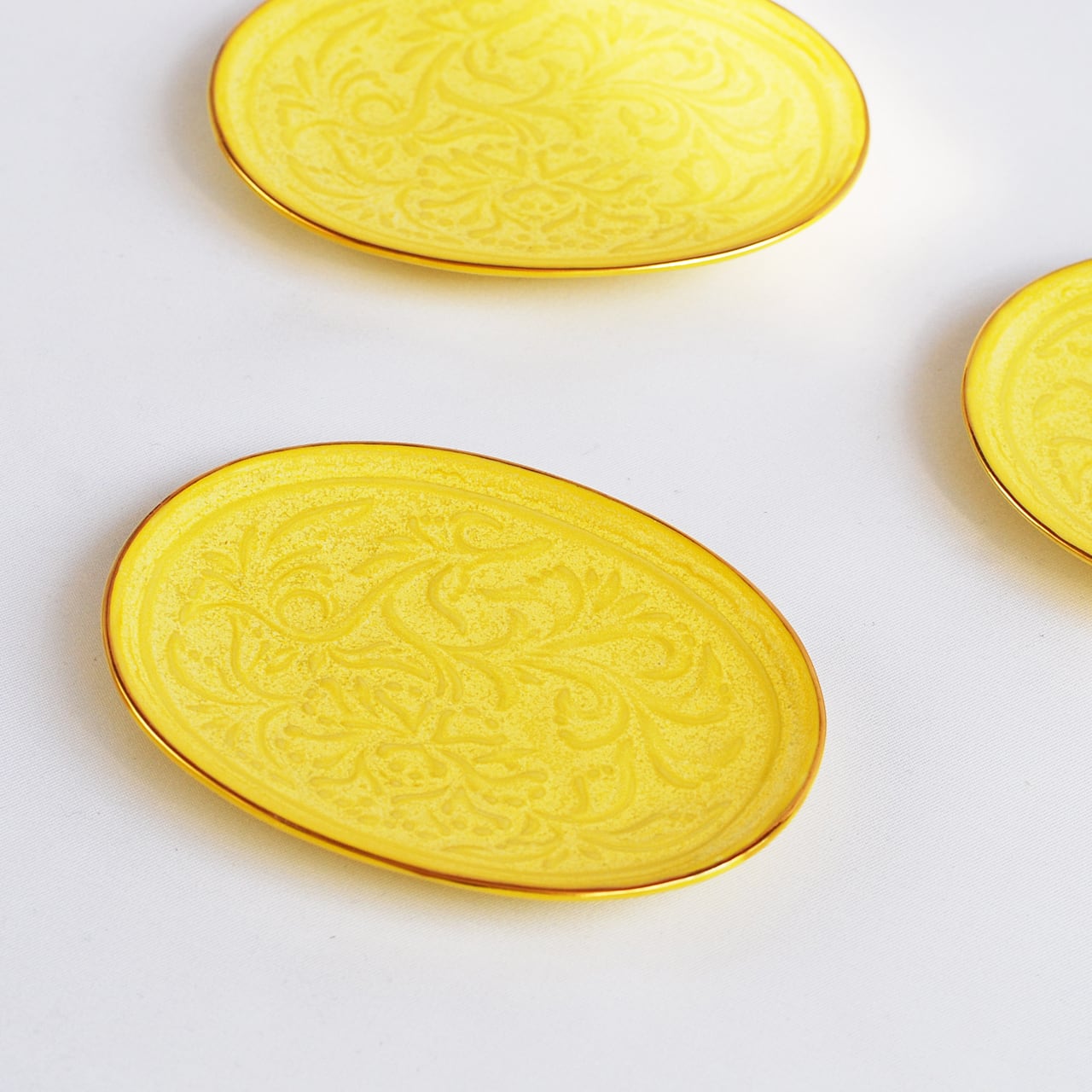 イエロー渕金唐草彫小判豆皿